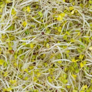 Broccoli sprouts are a nutritious superfood that are rich in antioxidants like sulforaphane (a natural compound found in cruciferous vegetables like broccoli, cauliflower, and kale) and glucoraphanin. Moreover, they’re packed with Vitamins C, K, and A, minerals like Potassium, Calcium, and Iron, Fiber, and plant-based protein.