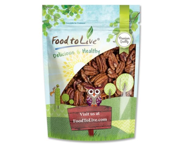 Check out Food to Live’s Roasted Pecans for sale, as they are dry roasted in the oven, and contain no oil or other additives. This process not only enhances their nutty flavor and provides them with crunchiness but also extends their shelf-life.